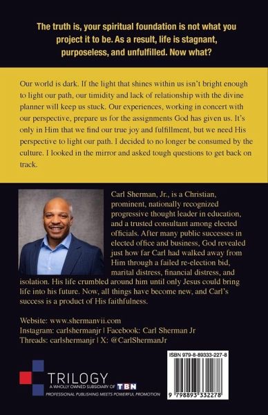 The truth is, your spiritual foundation is not what you project it to be. As a result, life is stagnant, purposeless, and unfulfilled. Now what? Our world is dark. If the light that shines within us isn't bright enough to light our path, our timidity and lack of relationship with the divine planner will keep us stuck. Our experiences, working in concert with our perspective, prepare us for the assignments God has given us. It's only in Him that we find our true joy and fulfillment, but we need His perspective to light our path. I decided to no longer be consumed by the culture. I looked in the mirror and asked tough questions to get back on track.
