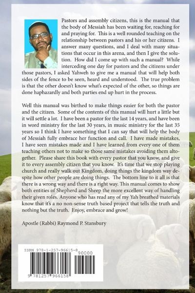 Well this manual was birthed to make things easier for both the pastor and the citizen. Some of the contents of this manual will hurt a little but it will settle a lot. I have been a pastor for the last 14 years, and have been in word ministry for the last 30 years, in music ministry for the last 35 years so I think I have something that I can say that will help the body of Messiah fully embrace her function and call.
