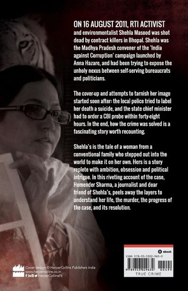 On 16 August 2011, RTI activist and environmentalist Shehla Masood was shot dead by contract killers in Bhopal. Shehla was the Madhya Pradesh convener of the 'India against Corruption' campaign launched by Anna Hazare, and had been trying to expose the unholy nexus between self-serving bureaucrats and politicians.The cover-up and attempts to tarnish her image started soon after: the local police tried to label her death a suicide, while the state chief minister ordered a CBI probe within forty-eight hours. In the end, how the crime was solved is a fascinating story worth recounting.Shehla's is the tale of a woman from a conventional family who stepped out into the world to make it on her own. Hers is a story replete with ambition, obsession and political intrigue. In this riveting account of the case, Hemender Sharma, a journalist and dear friend of Shehla's, peels away the layers to understand her life, the murder, its progress and its resolution.