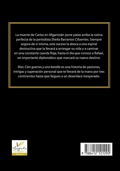 La muerte de Carlos en Afganistán pone patas arriba la rutina perfecta de la periodista Sheila Barrantes Cifuentes. Siempre segura de sí misma, este suceso la aboca a una espiral destructiva que la llevará a arriesgar su vida y a caminar en una constante cuerda floja, hasta el día que conoce a Rafael, un importante diplomático que marcará su nuevo destino. Shei. Cien guerras y una batalla es una historia de pasiones, intrigas y superación personal que te llevará de la mano por tres continentes hasta que llegues a un desenlace inesperado.