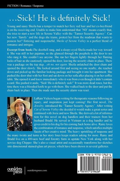 LaRain’s first novel is called ‘The Jewelry’, the second is ‘Cat of Serene Valley’ and the third is ‘Jocie of Serene Valley’. The characters in these books play a significant role in this novel of a young spitfire red head named Sheila; as she joins the family at Serene Valley Angus and Quarter Horse Ranch. Sheila’s love of German Shepherds started in her childhood and continues to influence her choice of careers; first as a dog handler for the military, and again, working at the ‘Tanner Security Agency’ in Texas helping Mike to train the security and guard dogs needed for the agency. Two months ago, Mike moved to the new training facility in Kentucky. She met her ex-boyfriend three months ago and after the first few dates decided he wasn’t really what she had been looking for in a long-term relationship. He was tall and handsome, but there was just something strange about him. He had a cruel streak and he was way too possessive to suit her. Randy did not want to accept her saying ‘no’. He kept calling all times of the day and night. Then about two weeks ago she was coming home to her apartment and finding dead flowers each day and the last one contained a bloody knife inside along with the dead flowers. That was the last straw for her. She couldn’t go to the police, since he worked there. She finally told her boss about it. He suggested a change of scenery might be in order for a while. Kentucky looked like a good fit for her. Sheila did not have a lease and a friend wanted to move into her apartment right away so the decision to pack up and start over was an easy one for her. Having been a military brat while she was growing up, she was used to new places, however making new friends was a bit harder. So, she was a bit happier knowing there would be one friend already there at the ranch, Mike. Can her new ‘family’ and the dogs she trains, protect her from the madman that wants to possess her? Enticing and suspenseful, Sheila of Serene Valley is a perfect blend of romance and intrigue.
