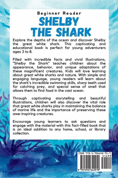 Explore the depths of the ocean and discover Shelby the great white shark. This captivating and educational book is perfect for young adventurers ages 3 to 8. Filled with incredible facts and vivid illustrations, "Shelby the Shark" teaches children about the appearance, behavior, and unique adaptations of these magnificent creatures. Kids will love learning about great white sharks and nature. With simple and engaging language, young readers will learn about the shark's incredible swimming skills, sharp teeth used for catching prey, and special sense of smell that allows them to find food in…mehr