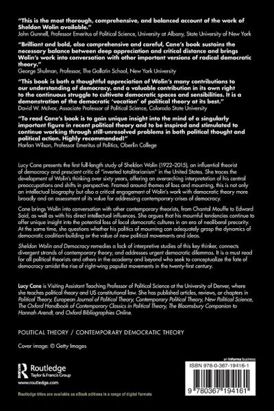 Sheldon Wolin and Democracy remedies a lack of interpretive studies of this key thinker, connects divergent strands of contemporary theory, and addresses urgent democratic dilemmas. It is a must read for all political theorists and others in the academy and beyond who seek to conceptualize the fate of democracy amidst the rise of right-wing populist movements in the twenty-first century.