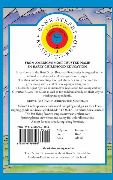 Ya hoo! Cook up some chicken and dumplings and get set for a knee-slapping good time, because HERE SHE COMES-six white horses and all! This fast-flying favorite song is a now zanier than ever, featuring brand-new verses and wacky full-color illustrations. A must for read-aloud, sing-along favorites. FROM AMERICA'S MOST TRUSTED NAME IN EARLY CHILDHOOD EDUCATION More than seventy years of educational research and innovative teaching have given the Bank Street College of Education the reputation as America's most trusted name in early childhood education. Because no two children are exactly alike in their development, we have designed the Bank Street Ready-to-Read series in three levels to accommodate the individual stages of reading readiness of children ages four through eight. • Level 1: GETTING READY TO READ- (PRE-K to GRADE 1) Books are perfect for reading aloud with children who are getting ready to read or are just beginning to read words or phrases. • Level 2: READING TOGETHER-(GRADES 1 to 3) Books are written especiallly for children who are on their way to reading independently but who may need help. • Level 3: I CAN READ IT MYSELF-(GRADES 2 to 3) Books are designed for children able to read on their own. They also can be enjoyed as read-alouds.