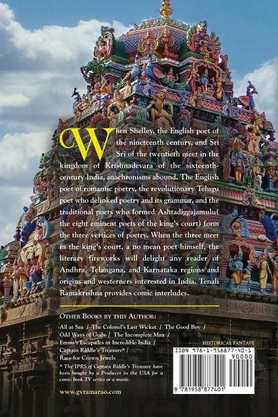 When Shelley, the English poet of the nineteenth century, and Sri Sri of the twentieth meet in the kingdom of Krishnadevara of the sixteenth century, anachronisms abound. The English poet of romantic poetry, the revolutionary poet who delinked poetry and its grammar, and the traditional poets who formed Ashtadiggajamulu (the eight eminent poets of the king's court) form the three vertices of poetry. When the three meet in the king's court, a no mean poet himself, the literary fireworks will delight any reader of Andhra, Telangana, and Karnataka regions and origins.