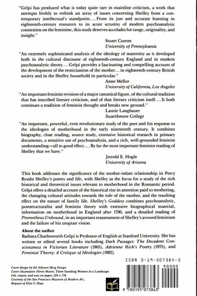 This book addresses the significance of the mother-infant relationship in Percy Bysshe Shelley's poetry and life, with Shelley as the focus for a study of the rich historical and theoretical issues relevant to motherhood in the Romantic period. Gelpi offers a derailed account of the historical rise in attention paid to mothering, the changing cultural attitudes towards the role of the mother, and the resulting effect on the nature of family life. Shelley's Goddess combines psychoanalytic, poststructuralist and feminist theory with extensive biographical material, information on motherhood in England after 1790, and a detailed reading of Prometheus Unbound, in an important reassessment of Shelley's avowed feminism and the failure of his utopian vision.