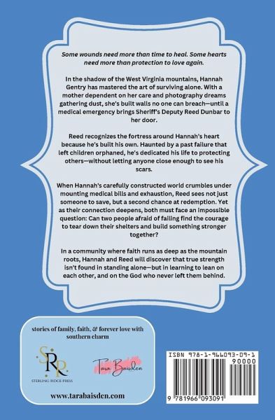 In the shadows of sacrifice, true strength isn't found in standing alone, but in the courage to lean on someone else. When Sheriff's Deputy Reed Dunbar responds to Hannah Gentry's emergency call, he never expects to find his path to redemption in her quiet strength. Haunted by a past tragedy where he failed to protect a young mother, Reed has dedicated himself to safeguarding Laurel Ridge-and keeping his heart sealed behind walls of guilt. Hannah has surrendered her photography dreams to care for her wheelchair-bound mother, building a fortress of self-reliance that leaves no room for vulnerability or love. But when her mother's health crisis shatters her carefully constructed world, Hannah faces an impossible choice: maintain her fierce independence or accept the shelter offered in Reed's arms. As mounting medical bills and unspoken fears threaten to overwhelm them both, Hannah and Reed must confront their deepest wounds to discover if faith can truly heal what's broken. In the embrace of their close-knit Laurel Ridge, West Virginia community, they'll learn that sometimes the strongest shelters are built by two damaged hearts coming together. Perfect for readers who love:Small-town romance with faith at its core Protective heroes with wounds to heal Strong, independent heroines learning to accept help Found family and supportive community Second chance at dreams and love For readers who appreciate emotional depth, authentic faith journeys, and the healing power of love.