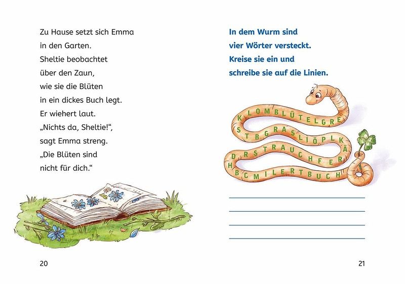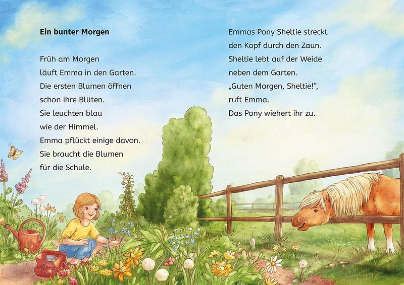 Lustig, klug und ganz schön frech - so ist Emmas Pony Sheltie. Gemeinsam erleben die beiden aufregende Abenteuer und haben eine Menge Spaß!Bald findet der große Blumen-Wettbewerb statt! Seit Tagen gibt es an Emmas Schule kein anderes Thema mehr. Alle Kinder haben gemeinsam Blumen gepflanzt, Blumenketten, Kränze und Girlanden gebastelt und Blüten gepresst. Zum Abschluss des Projekts steigt das Schulfest mit vielen Aktionen! Natürlich will auch Emmas Pony Sheltie überall dabei sein. Er liebt es, an Blumen zu knabbern. Gelingt es Emma, das Pony von all den Kunstwerken fernzuhalten? Ein lustiges Abenteuer mit dem frechen Shetlandpony ab Klassenstufe 1. Sechs Kapitel mit großer Schrift, bunten Bildern und Rätseln zum Leseverständnis.Lesen lernen ist schwer? Nicht mit dieser spannenden Geschichte, die auch Leseanfängerinnen ab Klassenstufe 1 leicht bewältigen können. Illustrationen und ein Leserätsel am Ende jedes Kapitels machen den Band abwechslungsreich, sorgen für Erfolgserlebnisseund erhöhen die Lesemotivation. So macht der Einstieg ins selbstständige Bücherlesen einfach Spaß.