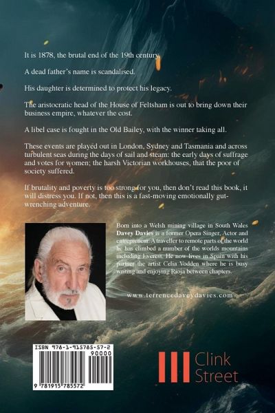 It is 1878, the brutal end of the 19th century. A dead father's name is scandalised. His daughter is determined to protect his legacy. The aristocratic head of the House of Feltsham is out to bring down theirbusiness empire, whatever the cost. A libel case is fought in the Old Bailey, with the winner taking all. These events are played out in London, Sydney and Tasmania and acrossturbulent seas during the days of sail and steam: the early days of suffrageand votes for women; the harsh Victorian workhouses, that the poor ofsociety suffered. If brutality and poverty is too strong for you, then don't read this book, itwill distress you. If not, then this is a fast-moving emotionally gut-wrenching adventure.