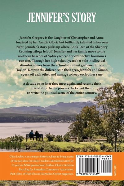 Jennifer and her family move to the northern beaches of Sydney where her over-active hormones run riot. Through her high school years her sole intellectual stimulus comes from the school's brilliant gardener Simon Taylor. Despite the difference in their ages, Jennifer and Simon spark off each other and manage to keep each other sane. A decade or so later they meet again, and resume their friendship. In the process the two of them re-write the political scene of the entire country. Jennifer Gregory is the daughter of Christopher and Anne of Shepory Crossing: Christopher's Story. Inspired by her Auntie Gloria but brilliantly talented in her own right, Jennifer's story picks up where Christopher's Story left off.