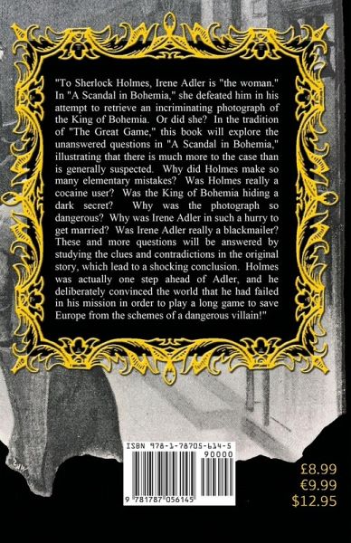 "To Sherlock Holmes, Irene Adler is "the woman." In "A Scandal in Bohemia," she defeated him in his attempt to retrieve an incriminating photograph of the King of Bohemia. Or did she? In the tradition of "The Great Game," this book will explore the unanswered questions in "A Scandal in Bohemia," illustrating that there is much more to the case than is generally suspected. Why did Holmes make so many elementary mistakes? Was Holmes really a cocaine user? Was the King of Bohemia hiding a dark secret? Why was the photograph so dangerous? Why was Irene Adler in such a hurry to get married? Was Irene Adler really a blackmailer? These and more questions will be answered by studying the clues and contradictions in the original story, which lead to a shocking conclusion. Holmes was actually one step ahead of Adler, and he deliberately convinced the world that he had failed in his mission in order to play a long game to save Europe from the schemes of a dangerous villain!"