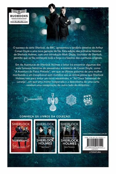 Em as aventuras de Sherlock Holmes o leitor irá encontrar algumas das mais famosas histórias de assassinato e mistério de Conan Doyle, como A Aventura da faixa pintada, em que as últimas palavras de uma mulher moribunda e um inexplicável som metálico são as únicas pistas que Sherlock Holmes tem para evitar um novo assassinato.