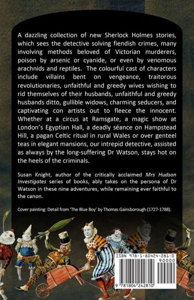 A dazzling collection of new Sherlock Holmes stories, which sees the detective solving fiendish crimes, many involving methods beloved of Victorian murderers, poison by arsenic or cyanide, or even by venomous arachnids and reptiles. The colourful cast of characters includes villains bent on vengeance, traitorous revolutionaries, unfaithful and greedy wives wishing to rid themselves of their husbands, unfaithful and greedy husbands ditto, gullible widows, charming seducers, and captivating con artists out to fleece the innocent. Whether at a circus at Ramsgate, a magic show at London's Egyptian Hall, a deadly séance on Hampstead Hill, a pagan Celtic ritual in rural Wales or over genteel teas in elegant mansions, our intrepid detective, assisted as always by the long-suffering Dr Watson, stays hot on the heels of the criminals. Susan Knight, author of the critically acclaimed Mrs Hudson Investigates series of books, ably takes on the persona of Dr Watson in these nine adventures, while remaining ever faithful to the canon.