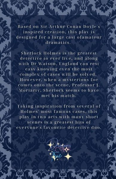 Based on Sir Arthur Conan Doyle's inspired creation, this play is designed for a large cast of amateur dramatics. Sherlock Holmes is the greatest detective to ever live, and along with Dr Watson, England can rest easy knowing even the most complex of cases will be solved. However, when a mysterious foe comes onto the scene, Professor J. Moriarty, Sherlock seems to have met his match. Taking inspiration from several of Holmes' most famous cases, this play in two acts with many short scenes is a greatest hits of everyone's favourite detective duo