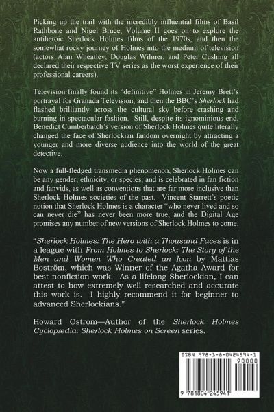 New Edition with index added. Picking up the trail with the incredibly influential films of Basil Rathbone and Nigel Bruce, Volume II goes on to explore the antiheroic Sherlock Holmes films of the 1970s, and then the somewhat rocky journey of Holmes into the medium of television (actors Alan Wheatley, Douglas Wilmer, and Peter Cushing all declared their respective TV series as the worst experience of their professional careers). Television finally found its "definitive" Holmes in Jeremy Brett's portrayal for Granada Television, and then the BBC's "Sherlock" had flashed brilliantly across the cultural sky before crashing and burning in spectacular fashion. Still, despite its ignominious end, Benedict Cumberbatch's version of Sherlock Holmes quite literally changed the face of Sherlockian fandom overnight, as studious middle-aged white men now found themselves sharing uneasy ground with a younger, more diverse, and more female audience. Now a full-fledged transmedia phenomenon, Sherlock Holmes can be any gender, ethnicity, or species, and is celebrated in fan fiction and fanvids, as well as conventions that are far more inclusive than Sherlock Holmes societies of the past. Vincent Starrett's poetic notion that Sherlock Holmes is a character "who never lived and so can never die" has never been more true, and the Digital Age promises any number of new versions of Sherlock Holmes to come.