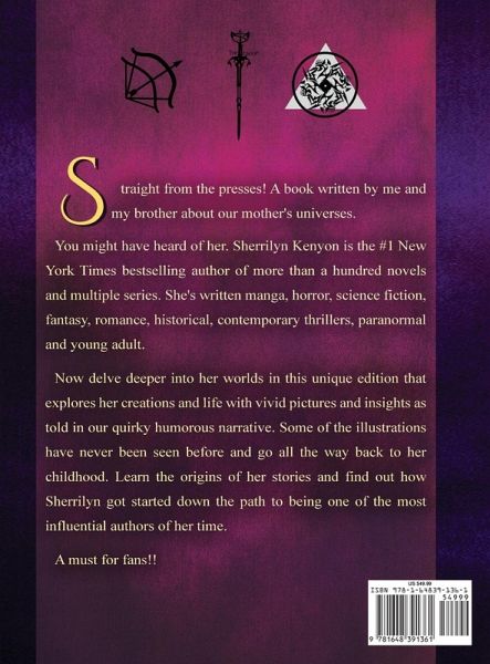 Straight from the presses! A book written by me and my brother about our mother's universes. You might have heard of her. Sherrilyn Kenyon is the #1 New York Times bestselling author of more than a hundred novels and multiple series. She's written manga, horror, science fiction, fantasy, romance, historical, contemporary thrillers, paranormal and young adult. Now delve deeper into her worlds in this unique edition that explores her creations and life with vivid pictures and insights as told in our quirky humorous narrative. Some of the illustrations have never been seen before and go all the way back to her childhood. Learn the origins of her stories and find out how Sherrilyn got started down the path to being one of the most influential authors of her time. A must for fans!!
