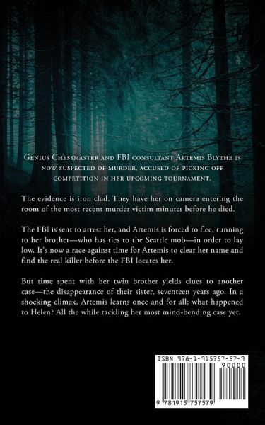 Genius Chessmaster and FBI consultant Artemis Blythe is now suspected of murder, accused of picking off competition in her upcoming tournament. The evidence is iron clad. They have her on camera entering the room of the most recent murder victim minutes before he died. The FBI is sent to arrest her, and Artemis is forced to flee, running to her brother-who has ties to the Seattle mob-in order to lay low. It's now a race against time for Artemis to clear her name and find the real killer before the FBI locates her. But time spent with her twin brother yields clues to another case-the disappearance of their sister, seventeen years ago. In a shocking climax, Artemis learns once and for all: what happened to Helen? All the while tackling her most mind-bending case yet.