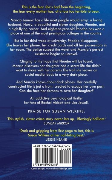 When her teenage daughter disappears, Marcia fears the worst. She'll do anything to find Phoebe, but her nightmare is just beginning... Marcia Lennox seems to have the perfect life. A loving husband, Harry, a beautiful daughter, Phoebe, a successful career, and an expensive London home. But in her third week at university, Phoebe vanishes without a trace. As Detective Sergeant Jo Boden from the Major Investigations Team examines the mystery of Phoebe's disappearance, she uncovers a complex web of deceit. Like most teenagers, Phoebe has secrets she kept from her parents. But is she caught in a deadly game of cat and mouse? And is it too late to save her? In her desperation, Marcia knows she must risk everything to find Phoebe. But her happy and comfortable life is a front. Estranged from her birth family, with a marriage on the rocks, Marcia must find the courage to leave her safe London bubble. She must journey back to the wilds of East Anglia and the desolate Norfolk Fens to confront her own dark past. Can she face her demons to save her child? And will the truth destroy them? 'She's Gone' is a heart-stopping thriller that explores the depths of a mother's love and the lengths she will go to, to protect her child. With a gripping plot, engaging characters, and unexpected twists and turns, this book will keep you guessing until the very end. Readers love Susan Wilkins' crime thrillers: 'Well plotted and unflinchingly told.' Sunday Express 'Murder, corruption and a crafted plot make for a fine read.' The Sun 'This stylish, clever crime story never lets up... Blazingly brilliant.' Sunday Mirror 'Dark and gripping from first page to last, this is Susan Wilkins at her nail-biting best.' Jessie Keane 'I was engaged from the very first chapter... Brilliant.' Goodreads reviewer, ¿¿¿¿¿