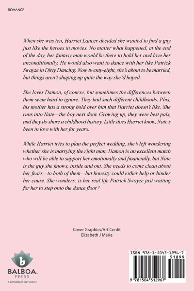 When she was ten, Harriet Lancer decided she wanted to find a guy just like the heroes in movies. No matter what happened, at the end of the day, her fantasy man would be there to hold her and love her unconditionally. He would also want to dance with her like Patrick Swayze in Dirty Dancing. Now twenty-eight, shes about to be married, but things arent shaping up quite the way shed hoped. She loves Damon, of course, but sometimes the differences between them seem hard to ignore. They had such different childhoods. Plus, his mother has a strong hold over him that Harriet doesnt like. She runs into Natethe boy next door. Growing up, they were best pals, and they do share a childhood history. Little does Harriet know, Nates been in love with her for years. While Harriet tries to plan the perfect wedding, shes left wondering whether she is marrying the right man. Damon is an excellent match who will be able to support her emotionally and financially, but Nate is the guy she knows, inside and out. She needs to come clean about her fearsto both of thembut honesty could either help or hinder her cause. She wonders: is her real life Patrick Swayze just waiting for her to step onto the dance floor?