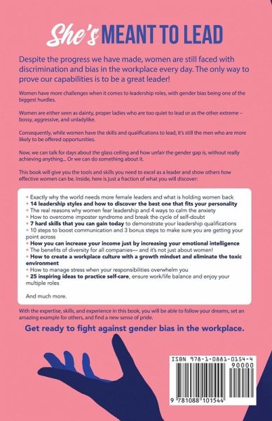 Despite the progress we have made, women are still faced with discrimination and bias in the workplace every day. The only way to prove our capabilities is to be a great leader! According to the Harvard Business Review, women were rated as more effective leaders than men. Furthermore, out of the 19 leadership competencies, women rated significantly higher in 13 areas. This isn't just in leadership roles that are considered traditionally female. The same difference was seen across different functions including IT, research & development, and manufacturing. So why is it that only 26% of CEOs and managing directors are female? And the bigger question is, why is it that women earn over $40,000 less per year than men who have earned the same qualification? There is no doubt that women have more challenges when it comes to leadership roles. These challenges are hard to overcome, but it's gender bias that causes the biggest problems. Women are either seen as dainty, proper ladies who are too quiet to lead or as the other extreme - bossy, aggressive, and unladylike. Consequently, while women have the qualifications and skills required for a leadership role, it's still the men who are more likely to be offered opportunities. Now, we can talk for days about the glass ceiling and how unfair the gender gap is, without really achieving anything... Or we can do something about it. This book will give you the tools and skills you need to excel as a leader and show others how effective women can be. Inside, here is just a fraction of what you will discover: Exactly why the world needs more female leaders and what is holding women back 14 leadership styles and how to discover the best one that fits your personality The real reasons why women fear leadership and 4 ways to calm the anxiety How to overcome imposter syndrome and break the cycle of self-doubt 7 hard skills that you can gain today to demonstrate your leadership qualifications 10 steps to boost communication and 3 bonus steps to make sure you are getting your point across How you can increase your income just by increasing your emotional intelligence The benefits of diversity for all companies- and it's not just about women! How to create a workplace culture with a growth mindset and eliminate the toxic environment How to manage stress when your responsibilities overwhelm you Why self-care is essential for all professionals, regardless of gender 25 inspiring ideas to practice self-care, ensure work/life balance and enjoy your multiple roles And much more. Despite the obstacles you face and the heavy responsibilities already on your plate, leadership is something worth pursuing. When you have that burning desire to do more, achieve more, and make a positive change in society, you have no choice but to heed it. With the expertise, skills, and experience in this book, you will be able to follow your dreams, set an amazing example for others, and find a new sense of pride. If you are ready to fight against gender bias in the workplace, then begin reading today!