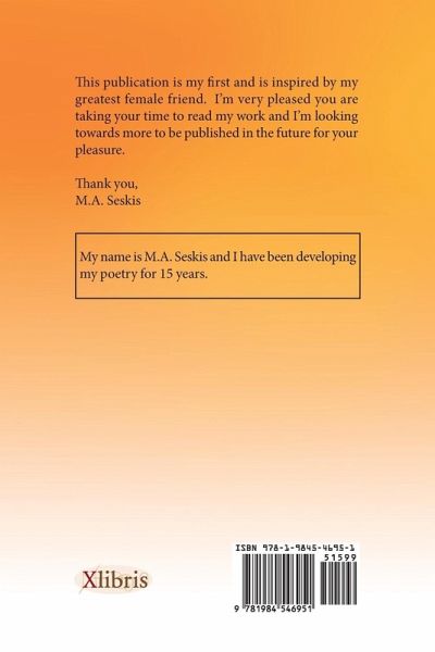 This publication is my first, and it is inspired by my greatest female friend. Im very pleased you are taking your time to read my work, and Im looking forward to publish more in the future for your pleasure. Thank you, M. A. Seskis