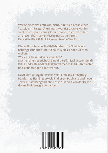 Wer Shelties das erste Mal sieht, fühlt sich oft an einen "Lassie en miniature" erinnert. Wer das zweite Mal hinsieht, muss spätestens jetzt aufpassen, nicht sein Herz an diesen charmanten Vierbeiner zu verlieren. Der dritte Blick fällt nicht selten in eine Wurfbox.Dieses Buch ist von Sheltieliebhabern für Sheltieliebhaber geschrieben und für solche, die es noch werden wollen:War es Liebe auf den ersten Blick? Machen Shelties süchtig? Sind die Fellknäuel anstrengend? Diese und viele andere Fragen werden mittels Geschichten und Erinnerungen beantwortet.Nach dem Erfolg der ersten vier "Shetland Sheepdog"- Bände, hat Sissi Steuerwald in diesem Buch alte und neue Texte zusammengebracht. Lassen Sie sich von der besonderen Sheltiemagie verzaubern.