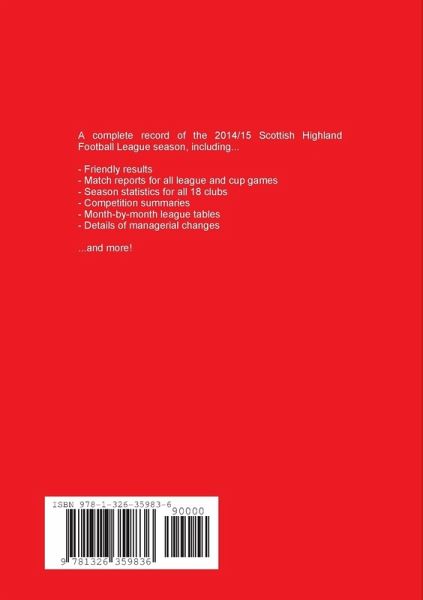 A complete record of the 2014/15 Scottish Highland Football League season, including... - Friendly results - Match reports for all league and cup games - Season statistics for all 18 clubs - Competition summaries - Month-by-month league tables - Details of managerial changes ...and more!