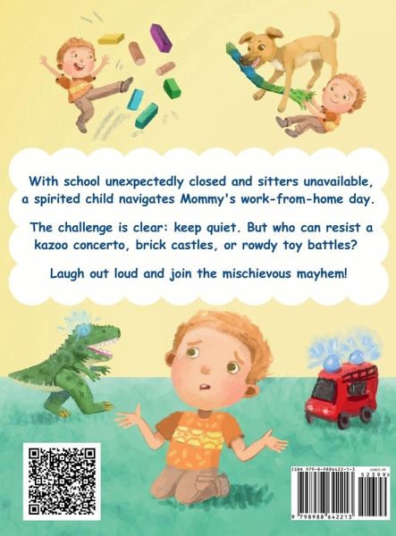 With school unexpectedly closed and sitters unavailable, a spirited child navigates Mommy's work-from-home day. The challenge is clear: keep quiet. But who can resist a kazoo concerto, brick castles, or rowdy toy battles? ¿Laugh out loud and join the mischievous mayhem!