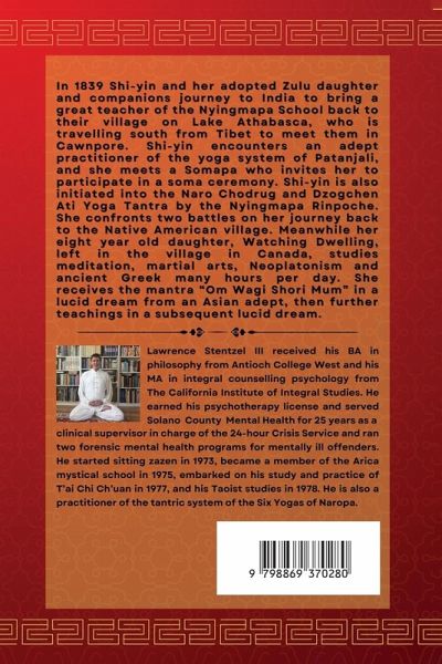 In 1839 Shi-yin and her adopted Zulu daughter and companions journeyed to India to bring a great teacher of the Nyingmapa School back to their village on Lake Athabasca, who was traveling south from Tibet to meet them in Cawnpore. Shi-yin encounters an adept practitioner of the yoga system of Patanjali, and she meets a Somapa who invites her to participate in a soma ceremony. Shi-yin is also initiated into the Naro Chodrug and Dzogchen Ati Yoga Tantra by the Nyingmapa Rinpoche. She confronts two battles on her journey back to the Native American village. Meanwhile, her eight-year-old daughter, Watching Dwelling, lives in a village in Canada, and studies meditation, martial arts, Neoplatonism, and ancient Greek many hours per day. She receives the mantra "Om Wagi Shori Mum" in a lucid dream from an Asian adept, then further teaching in a subsequent lucid dream.