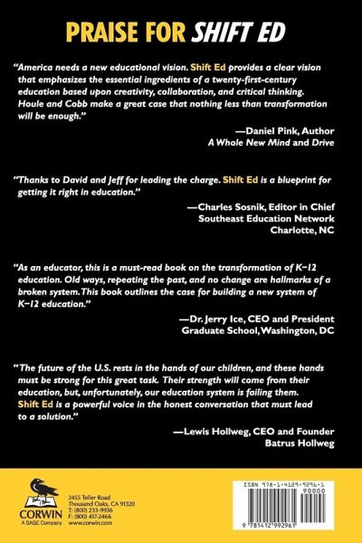 A comprehensive guide to transforming American schools Futurist David Houle and educational strategist Jeff Cobb issue a "call to action" to everyone who is concerned about education in America. He argues that reinventing our system is inevitable and we already have the information and capabilities to make the necessary changes. Shift Ed challenges us to ask the right questions, expand our vision, and take action now. The book includes an overview of the educational system and expert opinions on key areas, including: Technology and connectivity Organizational behavior Curriculum Learning and the brain Infrastructure and the physical plant