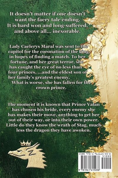 Book 2 of Shift. The story of Caelerys continues the morning after one of her best friends leaves to begin her married life. Cae is clandestinely summoned home to her father where she learns why he did not attend the coronation. He is dying of an ancient poison associated with the extinct House Levitau. In Stag's Heart, Cae discovered that she is a Sympath, a being gifted with understanding and cursed with the ability to feel the emotions of those around her. Prince Valan, they are certain, is a Shift. And not just any shift. A dragon, like his uncle who went mad and killed his wife and children before being slain himself. Returning to the capitol with the aid of a foreign princess and a new body guard, she herself is attacked on the way. The moment it is known that the crown prince has chosen his bride, every enemy she has makes their move, anything to get her out of their way, or into their own power. Little do they know the wrath of Stag, much less the dragon they have awoken. The culmination of Shift, begun in Stag's Heart; rife with evil, manipulative mothers and their sons, twisted lords not above kidnapping, and unexpected were-creatures. It doesn't matter if one doesn't want the faery tale ending. It is hard won and long suffering, and above all, inexorable.
