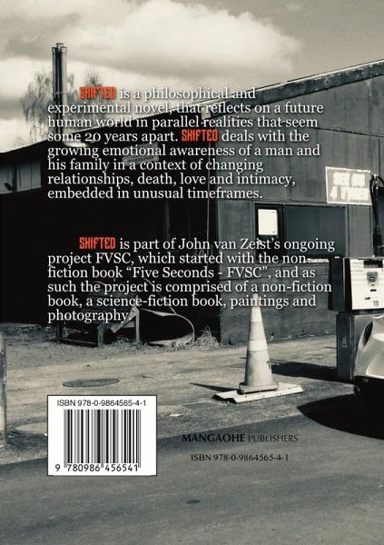 SHIFTED is a philosophical and experimental novel, that reflects on a future human world in parallel realities that seem some 20 years apart. SHIFTED deals with the growing emotional awareness of a man and his family in a context of changing relationships, death, love and intimacy, embedded in unusual timeframes. SHIFTED is part of John van Zeist's ongoing project FVSC, which started with the non-fiction book "Five Seconds - FVSC", and as such the project is comprised of a non-fiction book, a science-fiction book, paintings and photography.