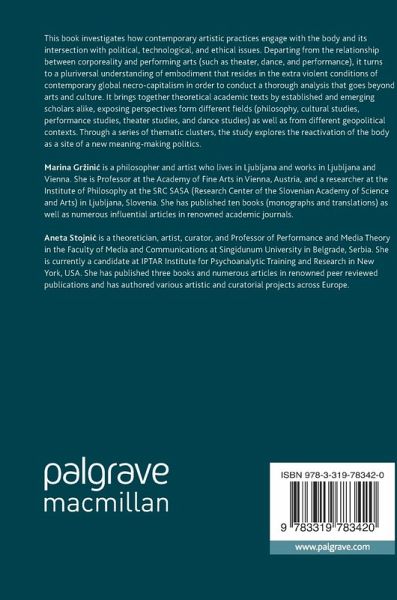 This book investigates how contemporary artistic practices engage with the body and its intersection with political, technological, and ethical issues. Departing from the relationship between corporeality and performing arts (such as theater, dance, and performance), it turns to a pluriversal understanding of embodiment that resides in the extra violent conditions of contemporary global necro-capitalism in order to conduct a thorough analysis that goes beyond arts and culture. It brings together theoretical academic texts by established and emerging scholars alike, exposing perspectives form different fields (philosophy, cultural studies, performance studies, theater studies, and dance studies) as well as from different geopolitical contexts. Through a series of thematic clusters, the study explores the reactivation of the body as a site of a new meaning-making politics.