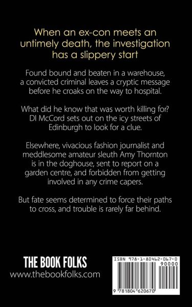 When an ex-con meets an untimely death, the investigation has a slippery start Found bound and beaten in a warehouse, a convicted criminal leaves a cryptic message before he croaks on the way to hospital. What did he know that was worth killing for? DI McCord sets out on the icy streets of Edinburgh to look for a clue. Elsewhere, vivacious fashion journalist and meddlesome amateur sleuth Amy Thornton is in the doghouse, sent to report on a garden centre, and forbidden from getting involved in any crime capers. But fate seems determined to force their paths to cross, and trouble is rarely far…mehr