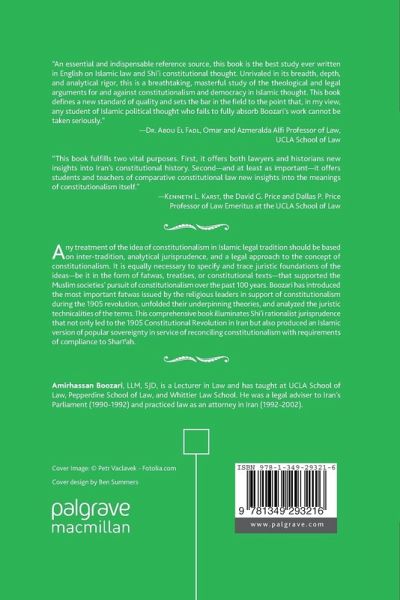 Focusing substantially on the relation between the concept of constitutionalism and Islamic Law in general and how such relation is specifically reflected in the Shiite jurisprudence, this volume explores the juristic origins of constitutionalism, especially in the context of 1905 Constitutional Revolution in Iran.