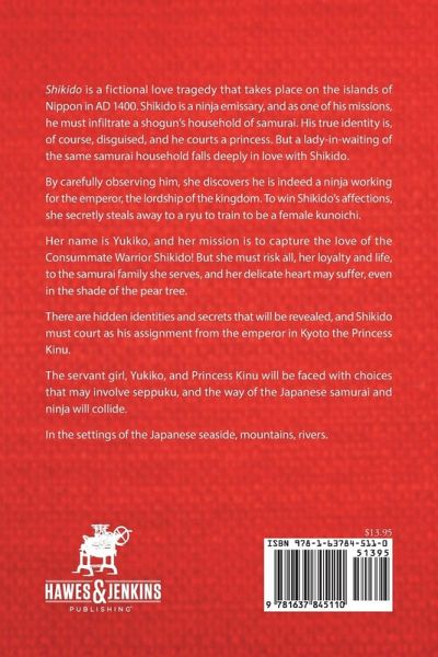 Shikido is a fictional love tragedy that takes place on the islands of Nippon in AD 1400. Shikido is a ninja emissary, and as one of his missions, he must infiltrate a shogun's household of samurai. His true identity is, of course, disguised, and he courts a princess. But a lady-in-waiting of the same samurai household falls deeply in love with Shikido. By carefully observing him, she discovers he is indeed a ninja working for the emperor, the lordship of the kingdom. To win Shikido's affections, she secretly steals away to a ryu to train to be a female kunoichi. Her name is Yukiko, and her mission is to capture the love of the Consummate Warrior Shikido! But she must risk all, her loyalty and life, to the samurai family she serves, and her delicate heart may suffer, even in the shade of the pear tree. There are hidden identities and secrets that will be revealed, and Shikido must court as his assignment from the emperor in Kyoto the Princess Kinu. The servant girl, Yukiko, and Princess Kinu will be faced with choices that may involve seppuku, and the way of the Japanese samurai and ninja will collide. In the settings of the Japanese seaside, mountains, rivers