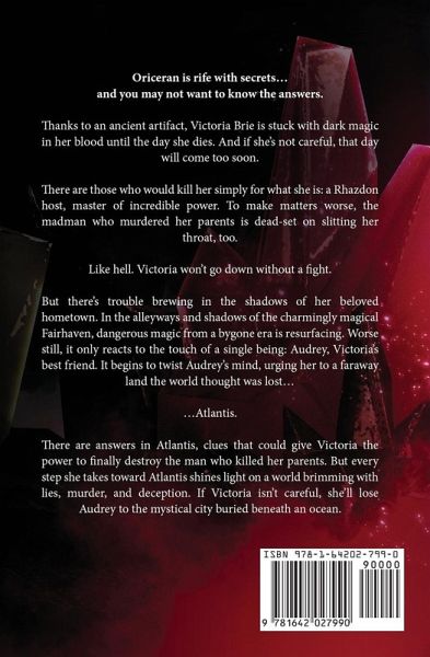 Oriceran is rife with secrets... and you may not want to know the answers. Thanks to an ancient artifact, Victoria Brie is stuck with dark magic in her blood until the day she dies. And if she's not careful, that day will come too soon. There are those who would kill her simply for what she is: a Rhazdon host, master of incredible power. To make matters worse, the madman who murdered her parents is dead-set on slitting her throat, too. Like hell. Victoria won't go down without a fight. But there's trouble brewing in the shadows of her beloved hometown. In the alleyways and shadows of the charmingly magical Fairhaven, dangerous magic from a bygone era is resurfacing. Worse still, it only reacts to the touch of a single being: Audrey, Victoria's best friend. It begins to twist Audrey's mind, urging her to a faraway land the world thought was lost... ...Atlantis. There are answers in Atlantis, clues that could give Victoria the power to finally destroy the man who killed her parents. But every step she takes toward Atlantis shines light on a world brimming with lies, murder, and deception. If Victoria isn't careful, she'll lose Audrey to the mystical city buried beneath an ocean. Victoria's used to being hunted... but no one threatens her friend and lives. This series is an enchanting urban fantasy saga with sarcastic ogres, wise-cracking wizards, and a brutally addictive full-contact sport called Berserk. Your only regret will be not starting it sooner. WARNING! This story contains cursing because these eighteen-year-olds are honorable rebels. If cursing offends you, you might not like this book.
