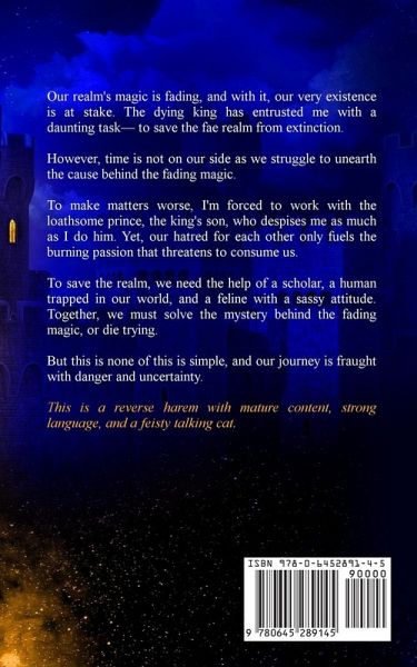 Our magic is dying... ...we'll die with it. On his deathbed, the king gave me an impossible task-save the fae realm from extinction. I need to find the cause, but time is running out. As if that wasn't enough, the king wants me to work with his son. I loathe him. And he loathes me. Even if we can't keep our hands off each other. With the help of the prince's friend, a scholar, a human trapped in our realm, and a talking cat, we might just figure out why the fae realm is at risk and how to save it. Or die trying. Who said my job was simple? Join my harem and our quest to protect the world. Get it now. **Warning - this is a reverse harem with adult content and language and a cliffhanger.**