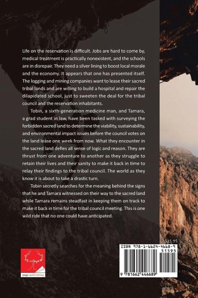 Life on the reservation is difficult. Jobs are hard to come by, medical treatment is practically nonexistent, and the schools are in disrepair. They need a silver lining to boost local morale and the economy. It appears that one has presented itself. The logging and mining companies want to lease their sacred tribal lands and are willing to build a hospital and repair the dilapidated school, just to sweeten the deal for the tribal council and the reservation inhabitants. Tobin, a sixth-generation medicine man, and Tamara, a grad student in law, have been tasked with surveying the forbidden sacred land to determine the viability, sustainability, and environmental impact issues before the council votes on the land lease one week from now. What they encounter in the sacred land defies all sense of logic and reason. They are thrust from one adventure to another as they struggle to retain their lives and their sanity to make it back in time to relay their findings to the tribal council. The world as they know it is about to take a drastic turn. Tobin secretly searches for the meaning behind the signs that he and Tamara witnessed on their way to the sacred land while Tamara remains steadfast in keeping them on track to make it back in time for the tribal council meeting. This is one wild ride that no one could have anticipated.