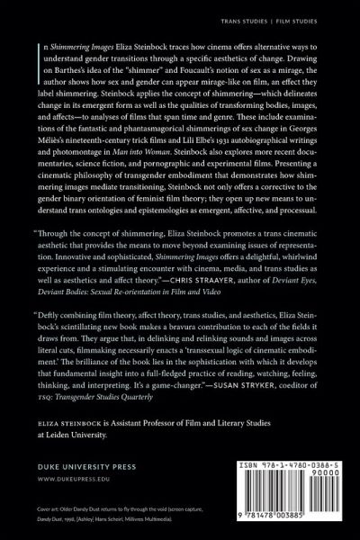 In Shimmering Images Eliza Steinbock traces how cinema offers alternative ways to understand gender transitions through a specific aesthetics of change. Drawing on Barthes's idea of the "shimmer" and Foucault's notion of sex as a mirage, the author shows how sex and gender can appear mirage-like on film, an effect they label shimmering. Steinbock applies the concept of shimmering-which delineates change in its emergent form as well as the qualities of transforming bodies, images, and affects-to analyses of films that span time and genre. These include examinations of the fantastic and phantasmagorical shimmerings of sex change in Georges Méliès's nineteenth-century trick films and Lili Elbe's 1931 autobiographical writings and photomontage in Man into Woman. Steinbock also explores more recent documentaries, science fiction, and pornographic and experimental films. Presenting a cinematic philosophy of transgender embodiment that demonstrates how shimmering images mediate transitioning, Steinbock not only offers a corrective to the gender binary orientation of feminist film theory; they open up new means to understand trans ontologies and epistemologies as emergent, affective, and processual.