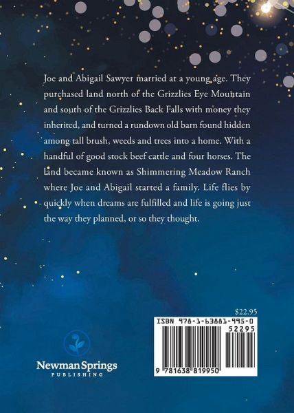 Joe and Abigail Sawyer married at a young age. They purchased land north of the Grizzlies Eye Mountain and south of the Grizzlies Back Falls with money they inherited, and turned a rundown old barn found hidden among tall brush, weeds and trees into a home. With a handful of good stock beef cattle and four horses. The land became known as Shimmering Meadow Ranch where Joe and Abigail started a family. Life flies by quickly when dreams are fulfilled and life is going just the way they planned, or so they thought.