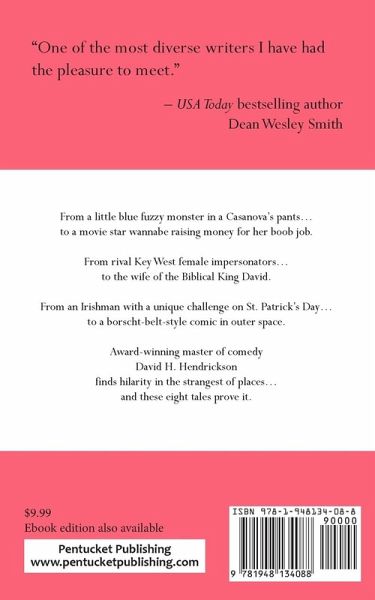 From a little blue fuzzy monster in a Casanova's pants... to a movie star wannabe raising money for her boob job. From rival Key West female impersonators... to the wife of the Biblical King David. From an Irishman with a unique challenge on St. Patrick's Day... to a borscht-belt-style comic in outer space. Award-winning master of comedy David H. Hendrickson finds hilarity in the strangest of places, and these eight tales prove it. "David H. Hendrickson is one of my favorite writers." -USA Today bestselling author Kristine Kathryn Rusch