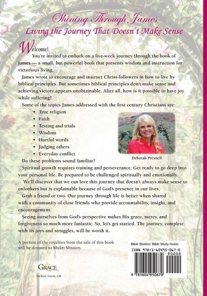 You’re invited to embark on a five-week journey through the book of James — a small, but powerful book that presents wisdom and instruction for victorious living. James wrote to encourage and instruct Christ-followers in how to live by biblical principles. But sometimes biblical principles don’t make sense and achieving victory appears unobtainable. After all, how is it possible to have joy while suffering? Some of the topics James addressed with the first century Christians are: • True religion • Faith • Testing and trials • Wisdom • Hurtful words • Judging others • Everyday conflict Do these problems sound familiar? Spiritual growth requires training and perseverance. Get ready to go deep into your personal life. Be prepared to be challenged spiritually and emotionally. We’ll discover that we can love this journey that doesn’t always make sense to onlookers but is explainable because of God’s presence in our lives. Grab a friend or two. Our journey through life is better when shared with a community of close friends who provide accountability, insight, and encouragement. Seeing ourselves from God’s perspective makes His grace, mercy, and forgiveness so much more fantastic. So, let’s get started. The journey, complete with its joys and struggles, will be worth it.