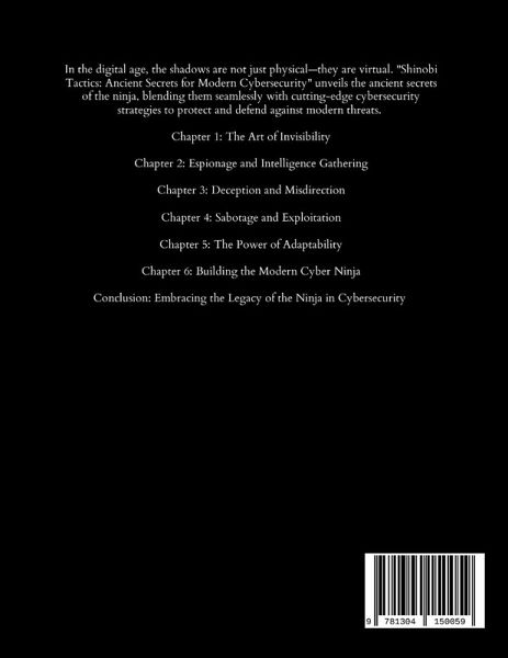 Shinobi Tactics: Ancient Secrets for Modern Cybersecurity By Adam Quattlebaum In an era where digital threats lurk in every corner of the internet, the wisdom of ancient warriors holds invaluable lessons for the modern world. "Shinobi Tactics: Ancient Secrets for Modern Cybersecurity" by Adam Quattlebaum masterfully intertwines the timeless strategies of the ninja with the cutting-edge techniques of cybersecurity, creating an essential guide for today's digital defenders. This book delves into the heart of ninja philosophy, revealing how their principles of stealth, strategy, and adaptability can be harnessed to fortify your cyber defenses. From the art of invisibility to the power of adaptability, each chapter provides actionable insights and practical techniques to outsmart and outmaneuver cyber adversaries. Key Highlights: The Art of Invisibility: Learn how to remain undetected in the digital world, safeguarding your privacy and protecting sensitive information. Espionage and Intelligence Gathering: Master the art of covert operations, gathering intelligence to stay one step ahead of cyber threats. Deception and Misdirection: Utilize the craft of creating illusions to confuse and mislead attackers, turning their strategies against them. Sabotage and Exploitation: Discover tactics for exploiting vulnerabilities and weakening your opponent's defenses. The Power of Adaptability: Embrace flexibility and resilience to adjust your tactics and overcome emerging threats. Building the Modern Cyber Ninja: Combine ancient wisdom with the latest in cybersecurity technology to become an adept defender against both traditional and contemporary threats. Adam Quattlebaum, a seasoned cybersecurity expert and martial arts enthusiast, brings a unique perspective to the field. His expertise in both IT and martial arts allows him to present innovative solutions that marry ancient wisdom with modern technology. Whether you're an IT professional, a cybersecurity enthusiast, or someone keen on the art of digital self-defense, "Shinobi Tactics" offers a fresh and profound approach to safeguarding the digital realm. Step into the shadows, embrace the ninja way, and become a guardian of cyberspace-unseen, yet ever vigilant.