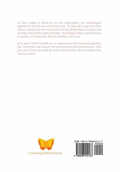 As Krys takes a shortcut by the spaceport, her eardragon speaks to her for the very first time. It asks her to go into the alleys created by the mountains of discarded items tossed out of ships bound for other planets. The foggy alleys are home to a variety of creatures. Not all of them are nice. Krys soon finds herself on an adventure she never bargained for. One that will stretch her compassion and her bravery. Will she and Shiny be able to reach the Golden Stone before the Enemy does?
