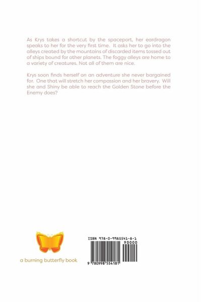 As Krys takes a shortcut by the spaceport, her eardragon speaks to her for the very first time. It asks her to go into the alleys created by the mountains of discarded items tossed out of ships bound for other planets. The foggy alleys are home to a variety of creatures. Not all of them are nice. Krys soon finds herself on an adventure she never bargained for. One that will stretch her compassion and her bravery. Will she and Shiny be able to reach the Golden Stone before the Enemy does?