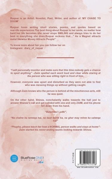 "I will personally monitor and make sure that this time nobody gets a chance to spoil anything" -Zaim spelt each word loud and clear while staring at the person who was sitting right in front of him. Although Zaim knew the person behind all those mischievous acts, he was still quiet. On the other hand, Shinza nonchalantly walks towards the hall just to answer the call and collides with the one and only ZAIM, and his phone fell from his hand. "Batameez Ladki", "Na chalne ka tareeqa hai, na baat karne ka, na ghar may rehne ka saleeqa hai" "Phuphu, please teach her how a NORMAL person walks and stays at home"- Zaim started his never-ending taunts looking towards Shinza.