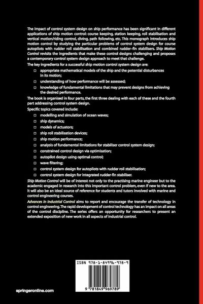 engineers into a single volume whilst concentrating on two important research control design problems: autopilots with rudder-roll stabilization and fin and combined rudder-fin stabilization. He has been guided by some of the leading marine control academics, in particular Mogens Blanke and Thor Fossen; indeed Chapters 3 and 4 on kinematics and kinetics of ship motion are jointly authored with Professor Fossen. There are some 240 cited references - an invaluable resource for interested readers. The volume is likely to appeal to a wide range of readers who will each be able to extract something different from the various parts of the monograph. Part I has some four chapters on the modelling fundamentals including kinematics, dynamics and actuators. Part II is a very useful survey of the ship roll stabilization problem and how ship roll performance is measured and assessed. This clearly motivates the human necessity for roll-reduction and roll stabilization. Parts III and IV move on to the control systems aspects of the various stabilization designs. Valuable material here includes a study of system performance limitations as caused by the presence of non-minimum phase characteristics and actuator saturation. Chapter 10 has an interesting historical review of these marine control problems stretching back some thirty-years into the 1970s.