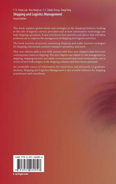 This new edition adds a new fifth section with four new chapters that discusses contemporary issues in shipping. The new chapters are related to risk management in shipping, shipping security and safety, environmental and social sustainability, and a review of new technologies in the shipping industry and their future potential.