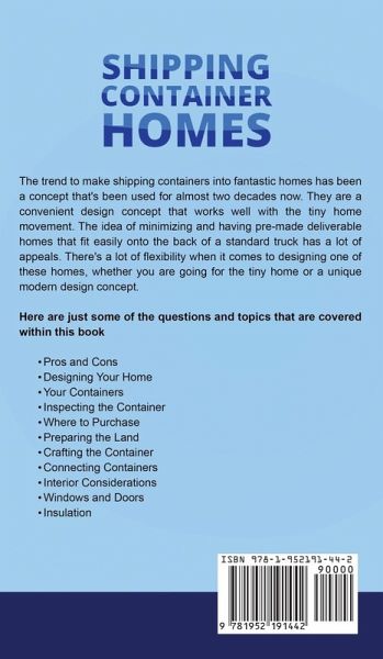 Discover How Shipping Containers Can Become Homes The trend to make shipping containers into fantastic homes has been a concept that's been used for almost two decades now. They are a convenient design concept that works well with the tiny home movement. The idea of minimizing and having pre-made deliverable homes that fit easily onto the back of a standard truck has a lot of appeals. There's a lot of flexibility when it comes to designing one of these homes, whether you are going for the tiny home or a unique modern design concept. This Book Will Tell It Like It Is: This book is not a…mehr